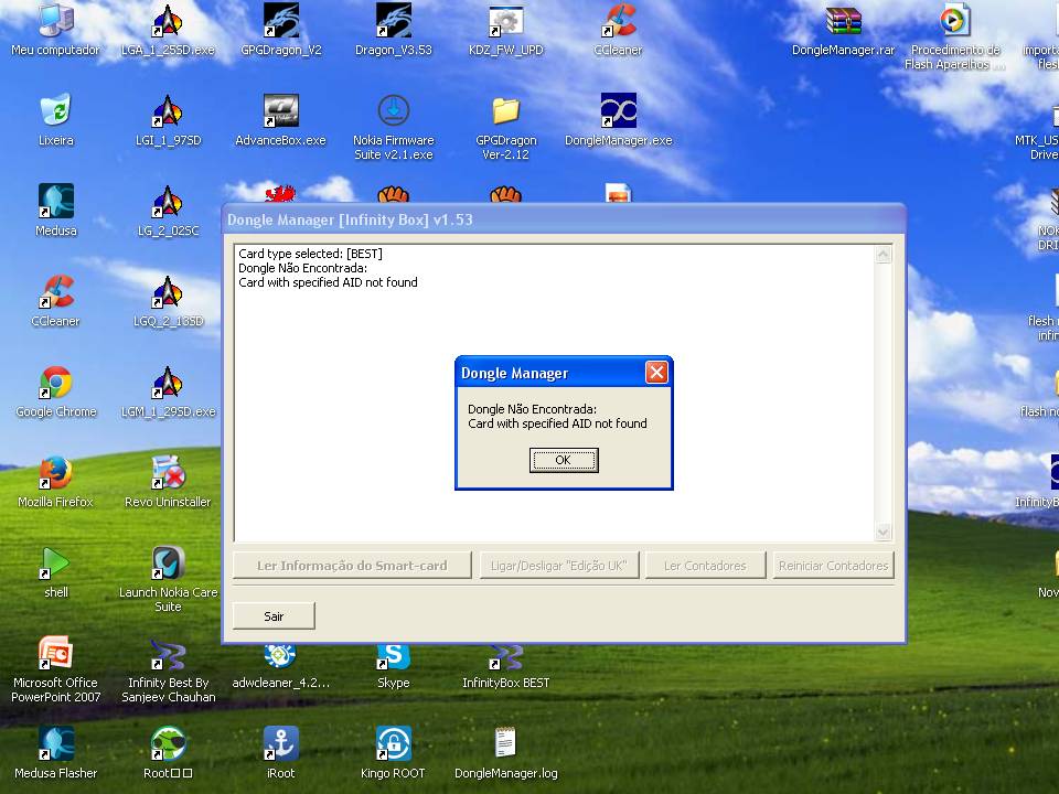 bom dia a todos gostaria da ajuda de vcs por favor , comprei a ativaçao pra infinity mas nao estou conseguindo atualizar na dongle manager so da erro obs tenho 2 pcs um win7 outro win xp os dois estao com o mesmo problema obs nao seria erro de drive pois o gerenciador nao esta mostrando erro alguem poderia me orientar agradeço desde ja
