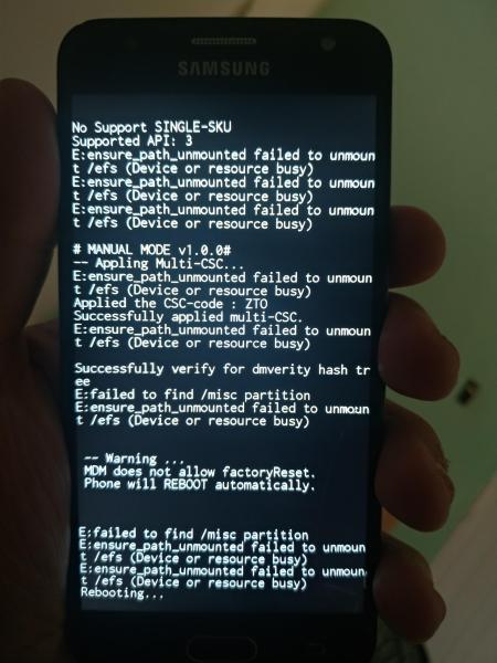 1. Estou com um j5 prime de um cliente e não estou conseguindo fazer o hard reset. Também não consigo entrar em modo download!! Abaixo uma imagem de quando eu faco o hard reset!