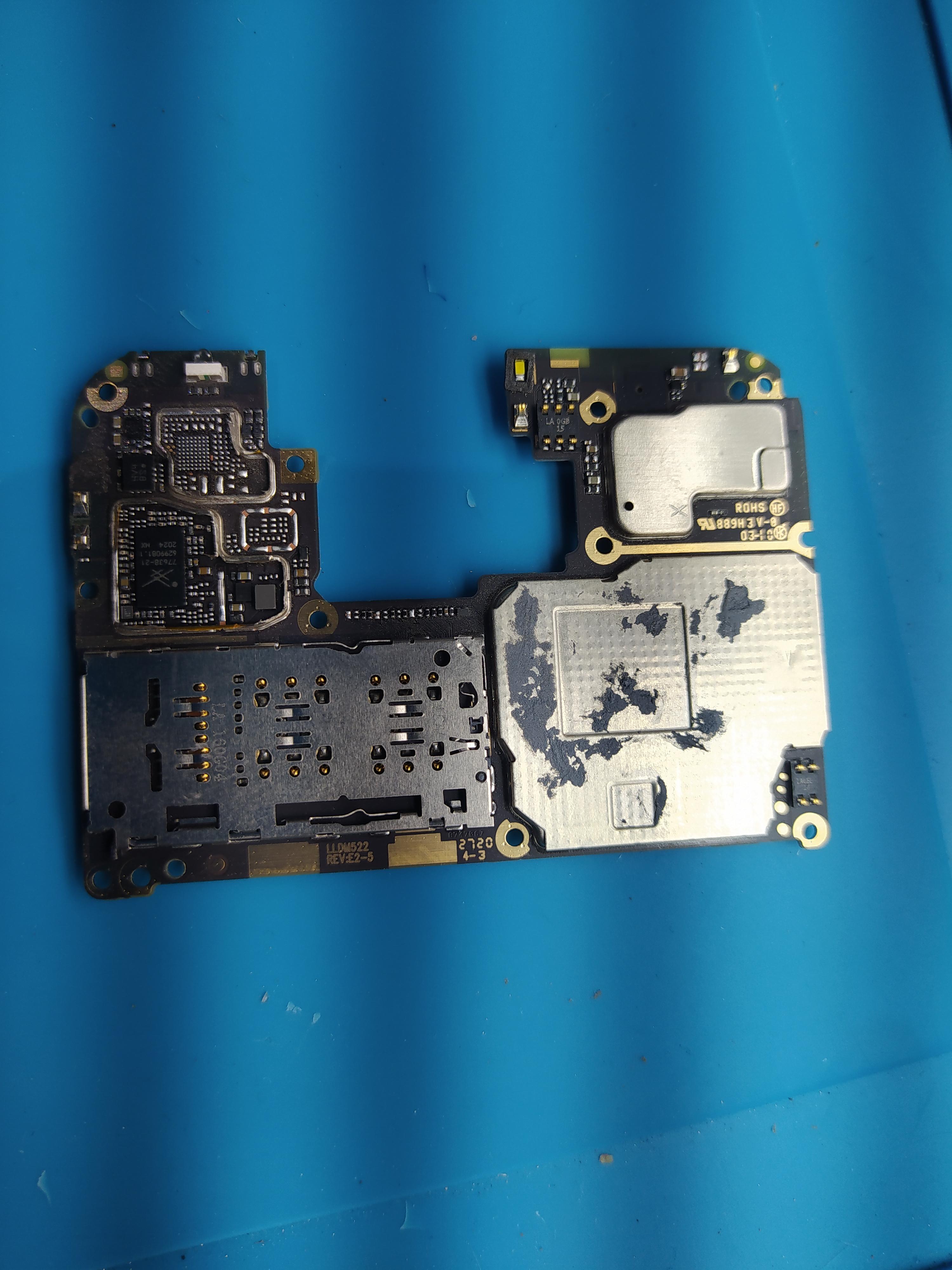 se a foto de onde encontrei o curto, porém não consegui achar solução. O pino da antena está como GND- Mi Note 9S sem serviço