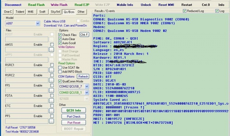Camarada, seculos nao faço um deste mas pelo que me lembro tem que ser reconhecida as duas portas pela usb do pc. Caso seja somente o modem o qcdinfo nao vai. Veja se a img em anexo te ajuda. Boa sorte. 8)