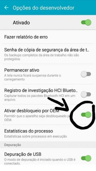 2- Após passar, entrar em configurações e habilita o "DESBLOQUEIO DE OEM " após habilita-lo.