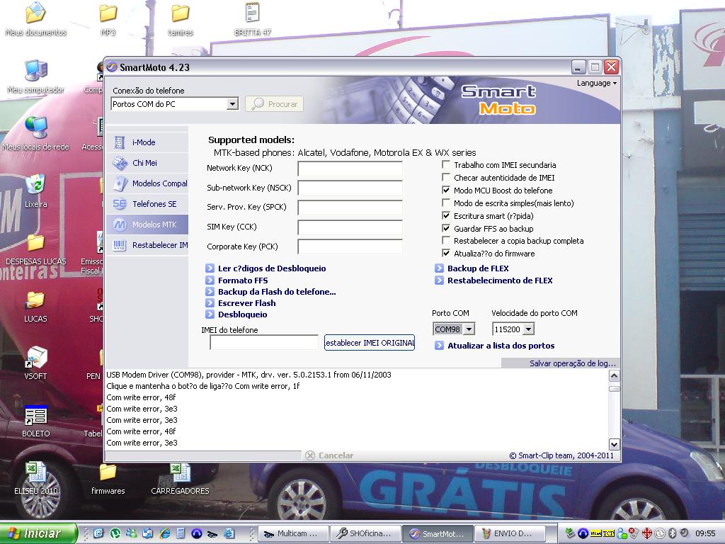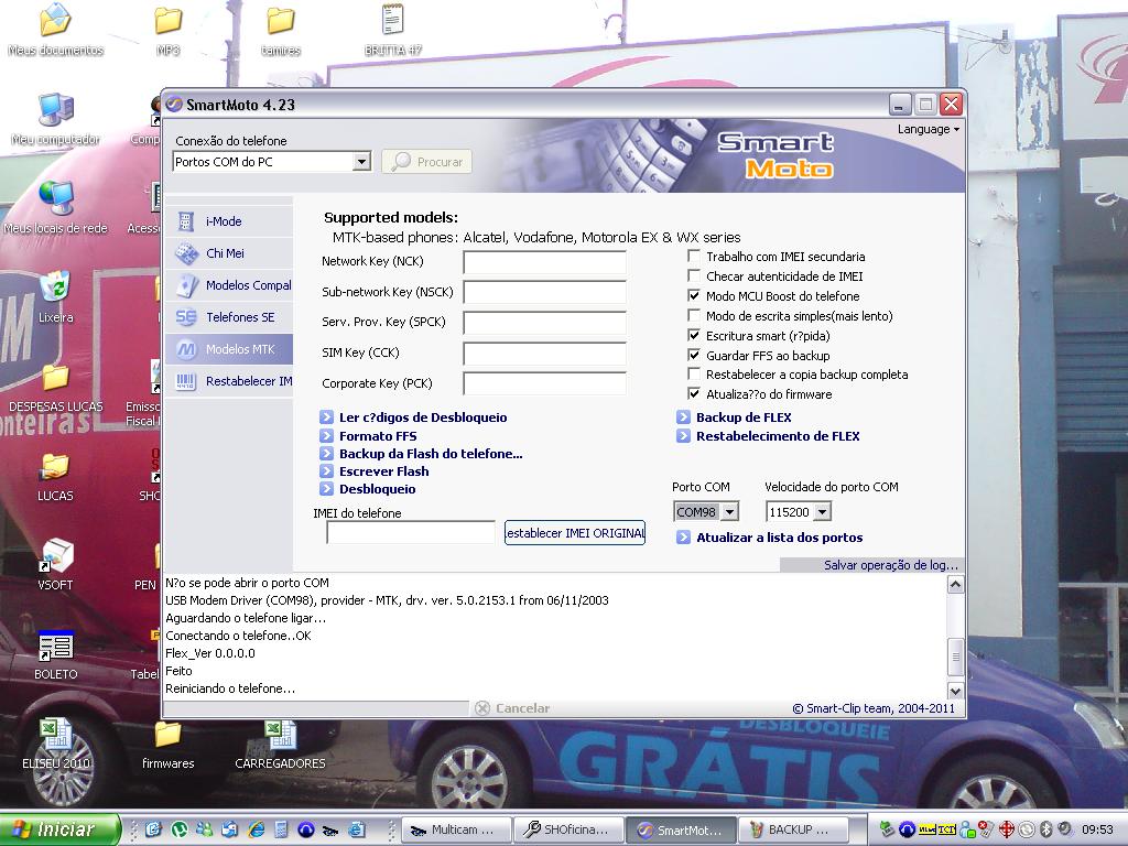 May 30, 201114 yr Author Senhor, com a Smartclip, faça um FLEX BACKUP do que tem português e faça o restore no outro. ola bom dia a todos ! tentei fazer o que o amigo disse , peguei um 100% nacional e copiei a flex e joguei em um importado que não tem as rede sociais e idioma pt-br, o processo de ler e gravar vai de boa , cabo do v8 direto na usb , cria a porta muda e 100% testado!conforme figura em anexo: blz , ai fui testar o ap. importado quase ficou bom , entrou as rede sociais , mais a linguagem ficou meio pt-br meio arabe! acredito que tenho que copiar a flash do ap tb! fui tentar do mesmo jeito que fiz com flex , ai manda apertar power e segurar, fiz isso ele desliga o ap e no programa da um erro e fica correndo varias port usb com erro e não sai disso, ( ver figura do erro ) se alguem tiver conseguido e quiser nos ajudar , por favor! ate mais liboredo LEU A FLEX EX-115 100%.doc