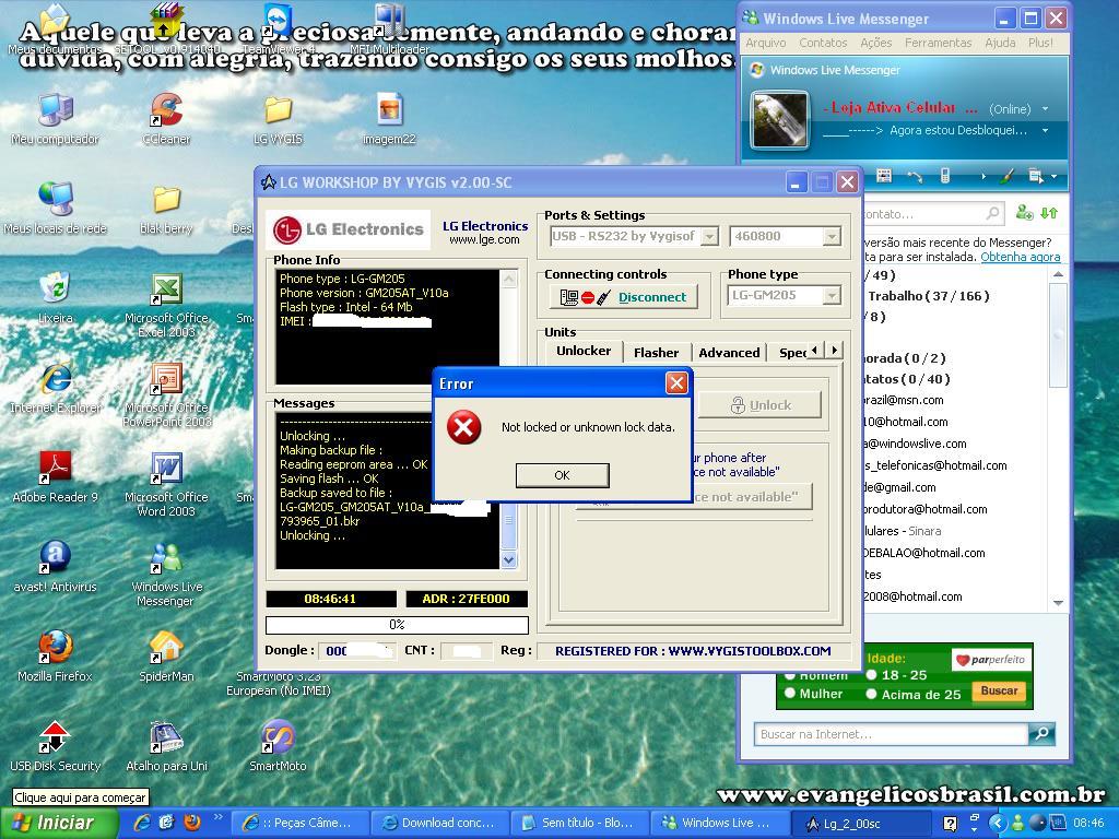 September 11, 200916 yr Author Amigo esse erro da pois você não esta completando o processo todo ok Ai vai a dica cabo me550 e segurar tecla power ate o termino do procedimento. sr.jo@o Sim ja desbloqueia umas 20 peças desses atc mais esse esta dando esse erro ja ate rodei a flash e continua com mesmo erro. igual ao print que postei.