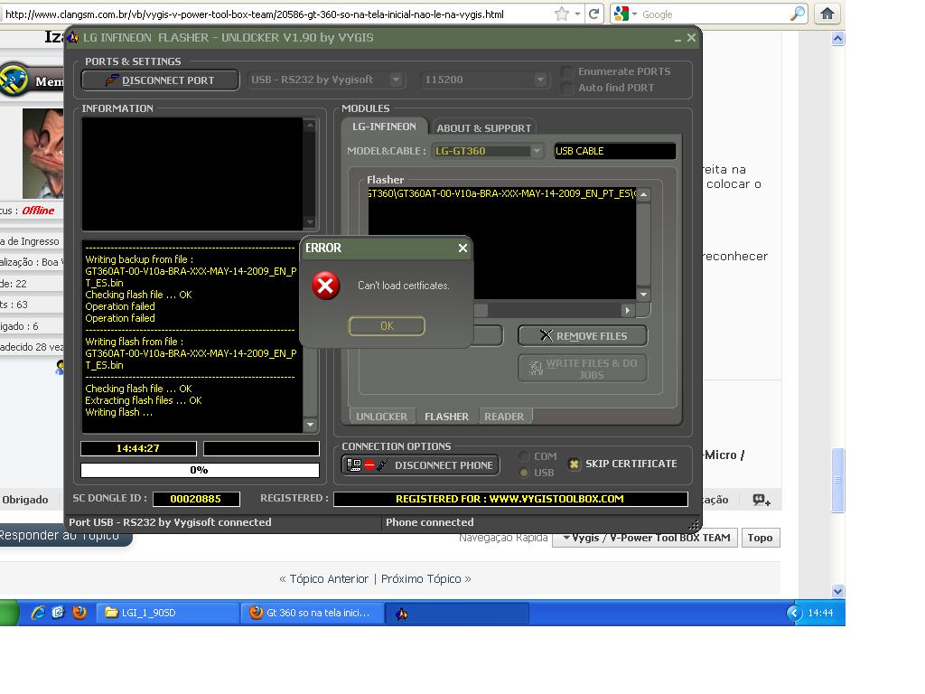 Boa tarde pessoal, eu tenho um lg GT 360 de um cliente, que ta na tela inicial e a vygis nao le ele, se alguem ja passou por isso e sabe como fazer favor me ajudem, desde ja agradeço!!!!!!post-9632-139967549031_thumb.jpg