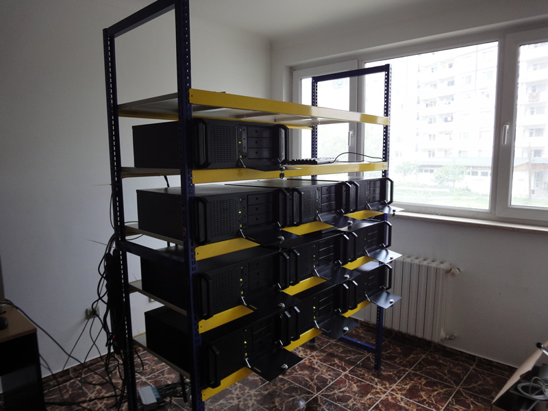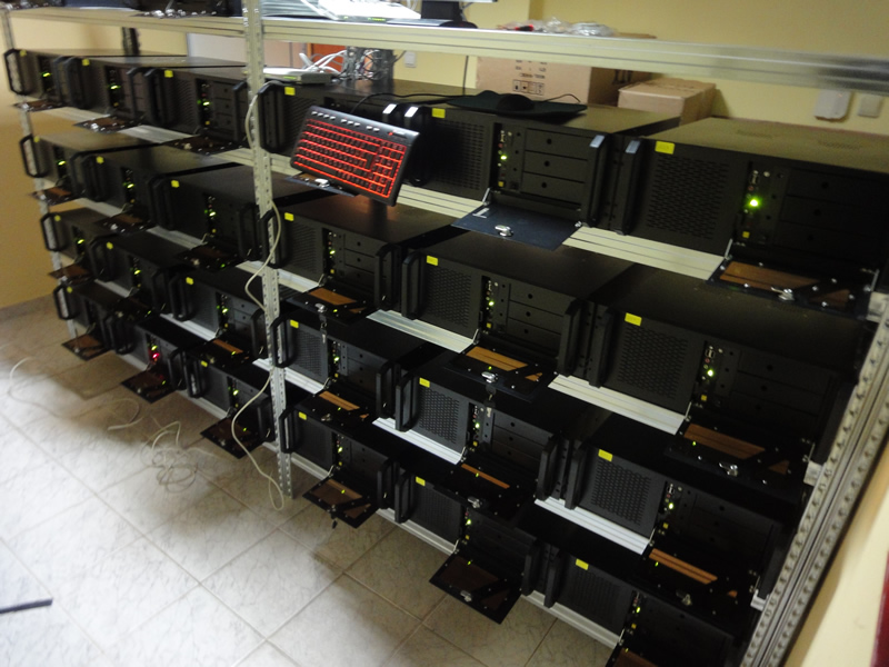 Veja que são usados racks e não gabinetes comuns, esses racks facilitam a circulação e a dissipação do calor.
