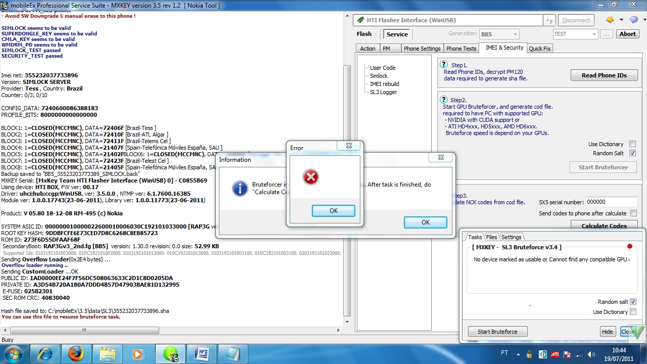 Ola a todos, Finalmente consegui fazer o pc funcionar para SL3, mas oque eu achei estranho é o tempo para unlock no Brutal Force, esta me dando um tempo de 10horas é isso mesmo sera?? Um nokia 7230 da Yoigo.