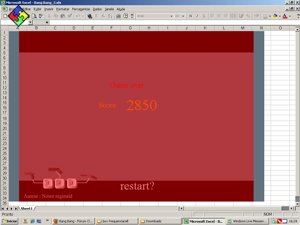 Postado Outubro 20, 2009 16 anos Escolha a arma e liquido com os inimigos nesse game bem divertido. Bang Bang_2.zip