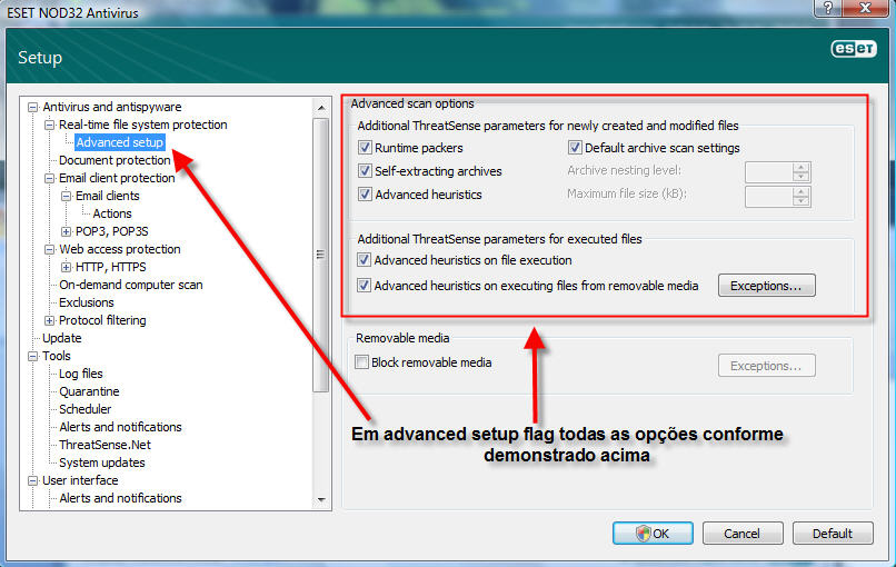 Postado Dezembro 22, 2009 15 anos NOD32 V4.0 Passo a Passo Após testes e estudos sobre qual o melhor antivirus do mercado cheguei a seguinte conclusão, em questão de segurança e desempenho para seu computador o nod32 não deixou a desejar, sendo assim preparei um tutorial para a sua configuração passo a passo segue abaixo: http://2.bp.blogspot.com/_dtCh_CwMHHM/SgCsFDEfhcI/AAAAAAAAAFQ/Wyu3lsj7k7Q/s1600/part12.jpg http://1.bp.blogspot.com/_dtCh_CwMHHM/SgCsB3Hn59I/AAAAAAAAAFI/yREwMscdUdc/s1600/part13.jpg http://3.bp.blogspot.com/_dtCh_CwMHHM/SgCr-y4RetI/AAAAAAAAAFA/bCzs-fw7Dzs/s1600/part14.jpg http://1.bp.blogspot.com/_dtCh_CwMHHM/SgCr8FvmaNI/AAAAAAAAAE4/-u2rXmY1xqE/s1600/part15.jpg http://2.bp.blogspot.com/_dtCh_CwMHHM/SgCr4iWJNLI/AAAAAAAAAEw/NmeTqPqu39E/s1600/part16.jpg http://2.bp.blogspot.com/_dtCh_CwMHHM/SgCr1Rte8VI/AAAAAAAAAEo/jfyECQU4mOQ/s1600/part17.jpg http://4.bp.blogspot.com/_dtCh_CwMHHM/SgCryNtZu6I/AAAAAAAAAEg/5VVxh-inUAs/s1600/part18.jpg http://2.bp.blogspot.com/_dtCh_CwMHHM/SgCrvKQTL9I/AAAAAAAAAEY/7Rdw_VT6y_g/s1600/part19.jpg http://2.bp.blogspot.com/_dtCh_CwMHHM/SgCrq4ekzII/AAAAAAAAAEQ/QLoJO4XQ880/s1600/part20.jpg http://3.bp.blogspot.com/_dtCh_CwMHHM/SgCrn9-ZReI/AAAAAAAAAEI/E1NbNkwX8eM/s1600/part21.jpg http://1.bp.blogspot.com/_dtCh_CwMHHM/SgCwEIQu_KI/AAAAAAAAAHA/USTb04m9elE/s1600/part22.jpg http://3.bp.blogspot.com/_dtCh_CwMHHM/SgCvJ-bBX0I/AAAAAAAAAGw/BcEYwBDeAao/s1600/part19.jpg Termino da configuração. Isso fará com que obtenha o melhor desempenho sobre seu nod32. Direitos: Vagner Informatica Link do NODE32 4.0.468 [DOWNLOAD]http://www.baixaki.com.br/download/nod32.htm[/DOWNLOAD]