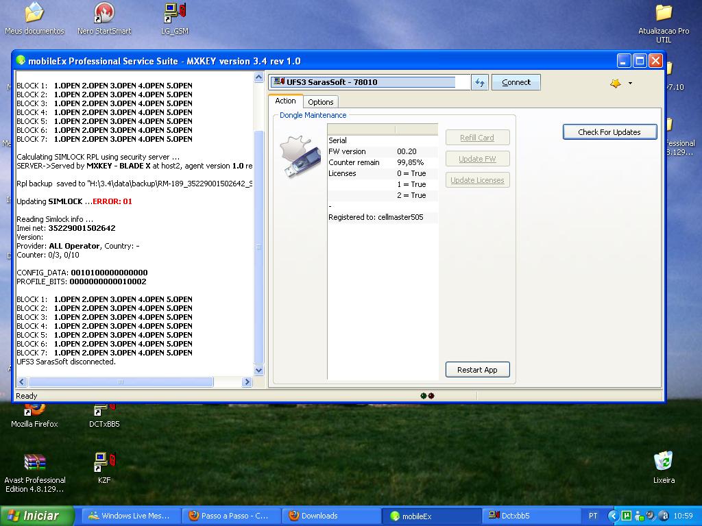 Amigo bom dia, comprei uma MXKEY ja ativada baixei o software mais recente,mas não estar efetuando os desbloqueios, nos DCT4 estar dando ERROR:1. E nos BB5 estar aparecendo esta frase: Failed to read SP data