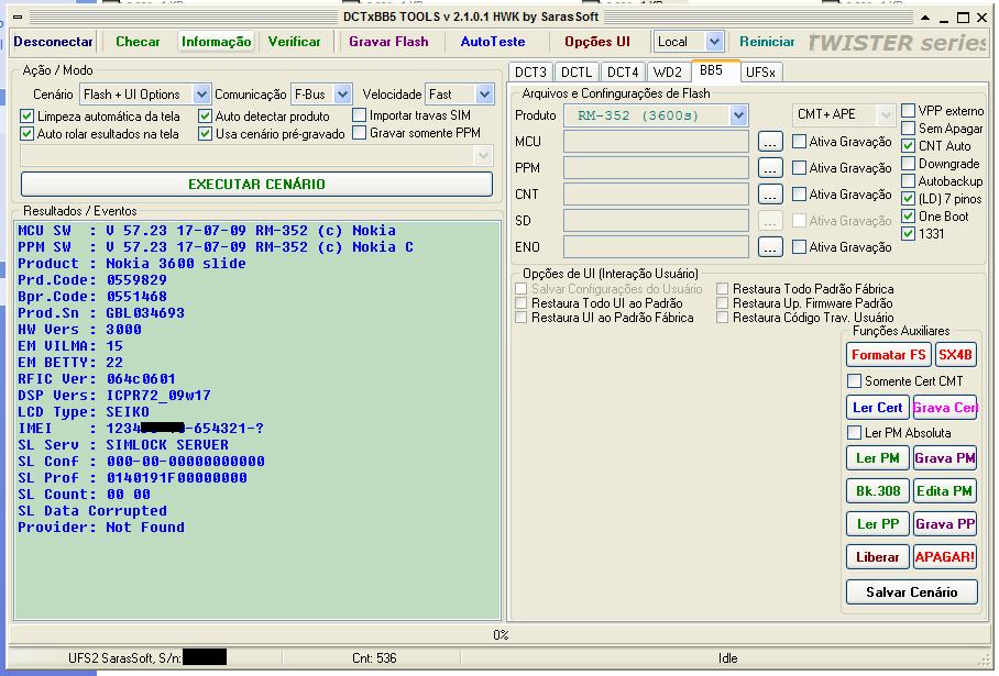 Postado Agosto 12, 2010 15 anos olá tenho aqui na minha assistencia um 3600 que entrou travando na tela inicial, depois de uma flash ele voltou a ligar e chega na tela que pergunta se quer iniciar sem chip, depois da confirmaçao ele mostra na tela contact sercive e se desliga!! tenho a box twister com o modulo hwk atualizado e a dogle pkey, quando faço a leitura, aparece o imei 12345xxx-? fui mandar desbloquear pra ver no que dava ai da uma mensagem dizendo que o imei está corrompido!! Alguem pode me ajudar?? ja estou pesquisando a 2 dias mas nao acho nada de concreto!!! obrigado Amigo Faça desta forma abaixo . Flash ( Versao mais alta ) Write Pm Unlock POste resultados